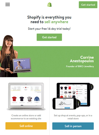 我們發(fā)現(xiàn),Shopify 并沒有像 Amazon 一樣采用復(fù)雜的頁面布局,更沒有放置太多的內(nèi)容在首頁,這使他們可以輕而易舉地實現(xiàn)響應(yīng)式布局。簡潔的網(wǎng)站設(shè)計可以讓訪客以最快的速度找到自己想要的東西。